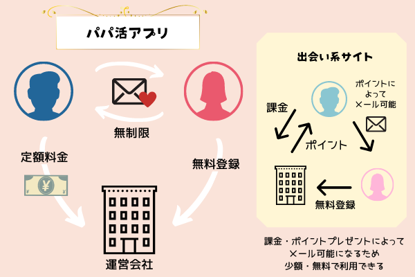 下記の点が、パパ活アプリと通常のマッチングアプリと違うところです。