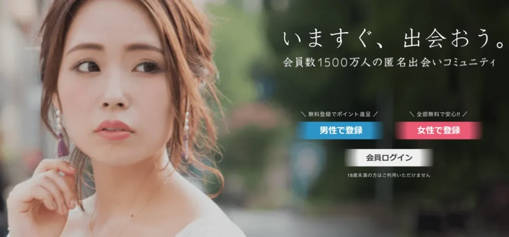 2位/490点![]() PJ | 若めの女性が多い 無料登録する | 無料 | 4,500円/月〜 +ポイント必要 | なし | 女性 20〜30代中心 男性 30〜50代中心 | 本人確認 24時間監視 通報制度 |