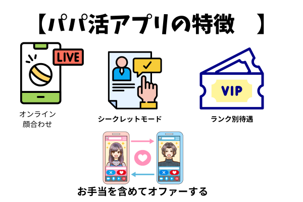 当サイトで推している「パパ活専用アプリ(サイト)」は「お手当前提の関係性を求めている男女だけが集まっているマッチングアプリ」のことです。