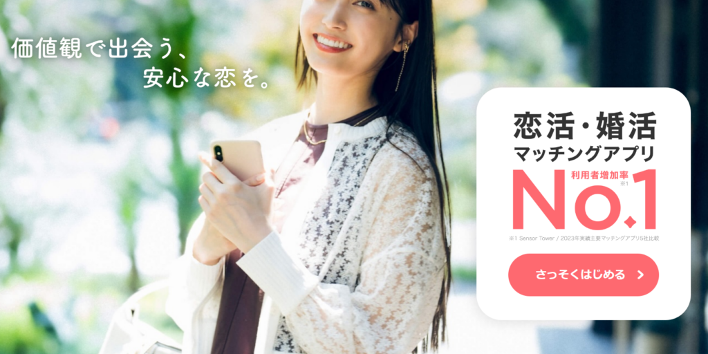 with(ウィズ)は婚活・恋活専用のマッチングアプリ。累計会員数が500万人を超えている人気アプリです。