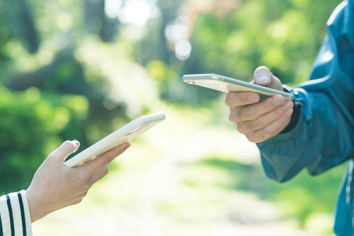 それに、周りから見ると二人でスマホを見て会話しているように見えるので、かなり自然です。