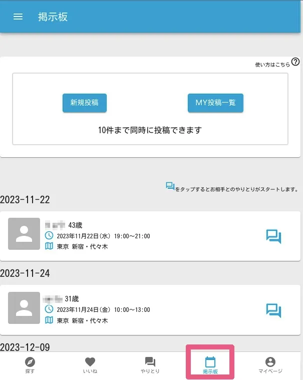 会いたい日にち・場所で絞り込みたいなら「掲示板」
