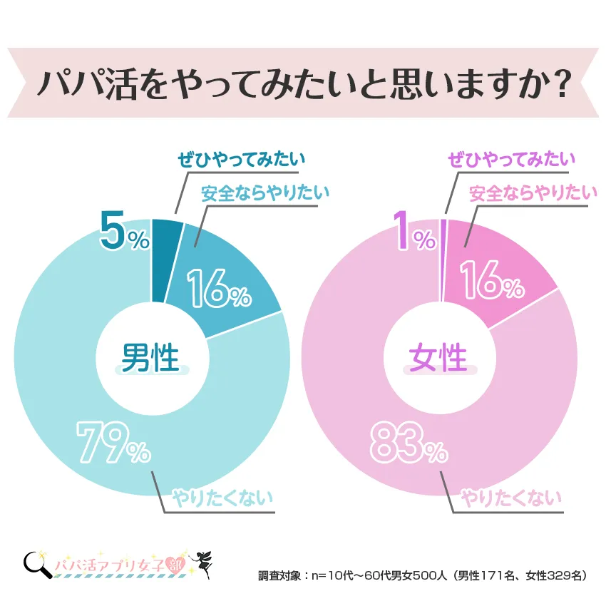 パパ活をやってみたいかどうかお聞きしたところ、このような結果になりました。